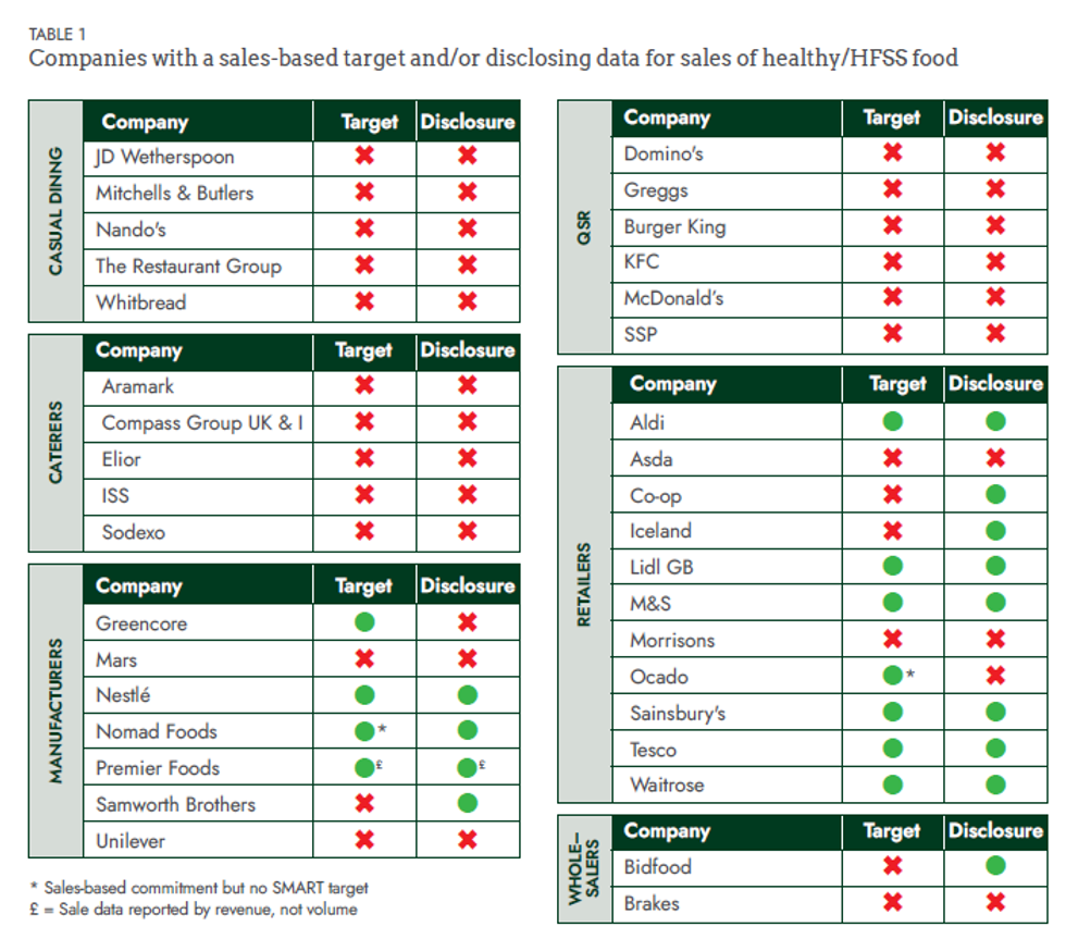 - Only one in four major UK food businesses has a healthy sales target and discloses data on the healthiness of their sales